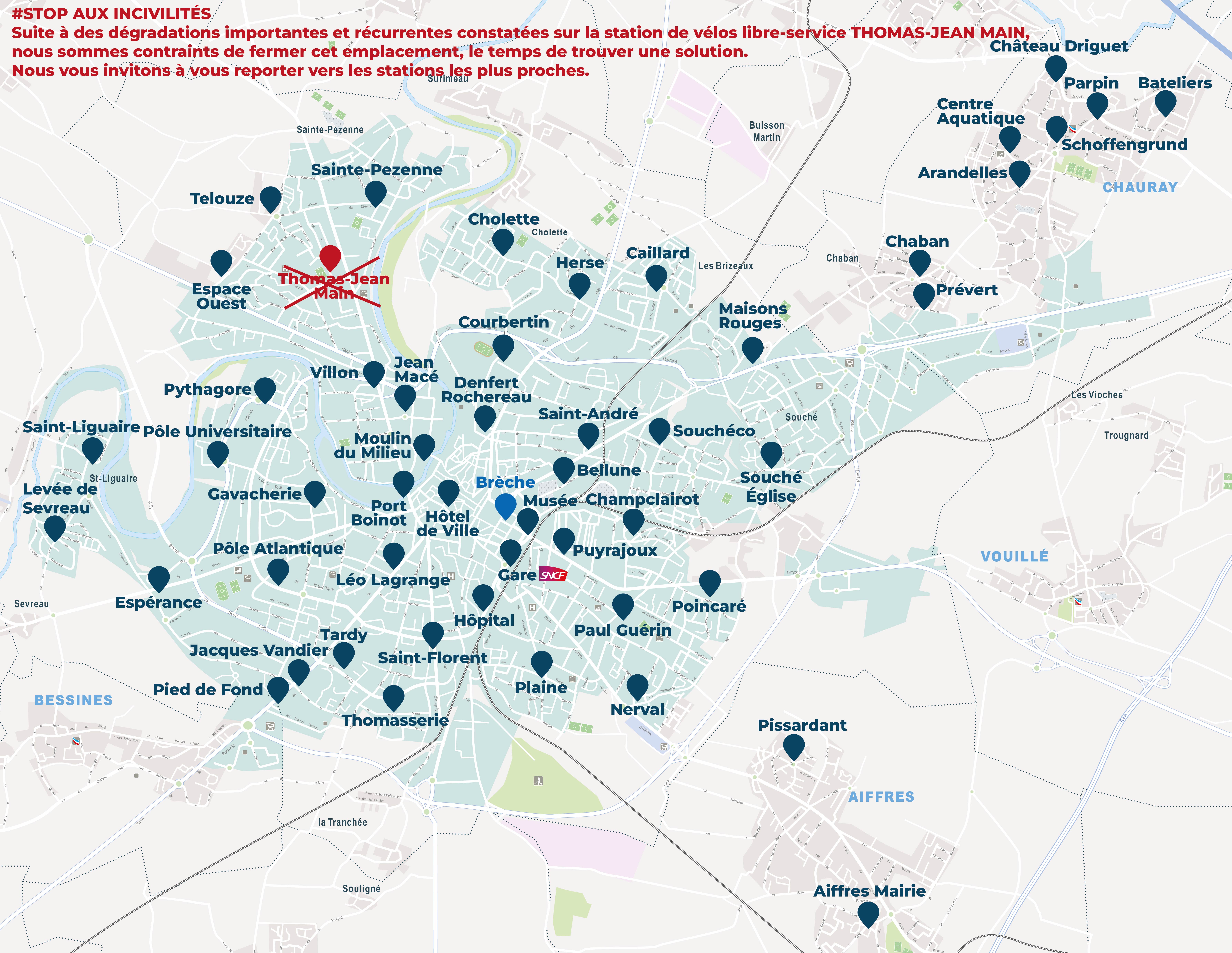 11 nouvelles stations supplémentaires sont à votre disposition, à compter du vendredi 16 janvier sur les communes de Aiffres, Chauray et Niort.