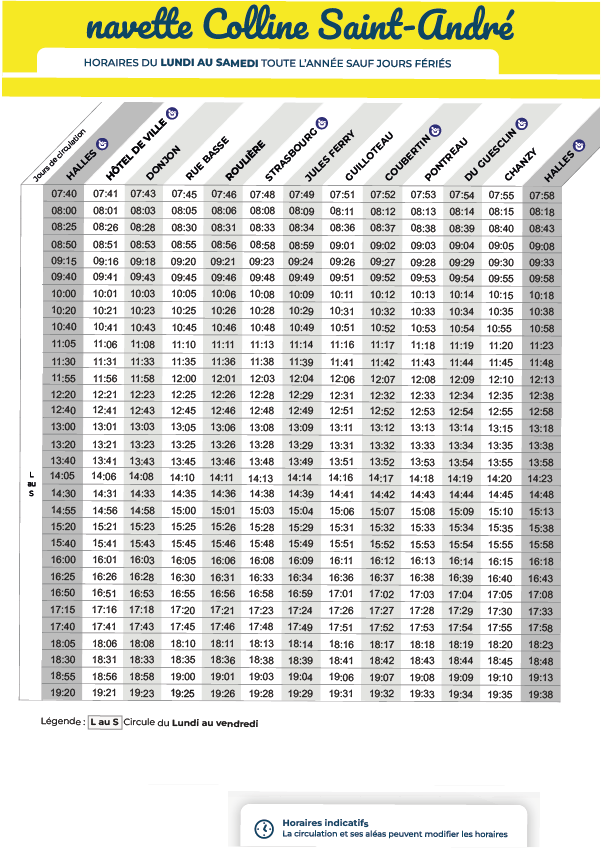 A compter du lundi 05 janvier 2026, les horaires de la navette Colline Saint-André changent.