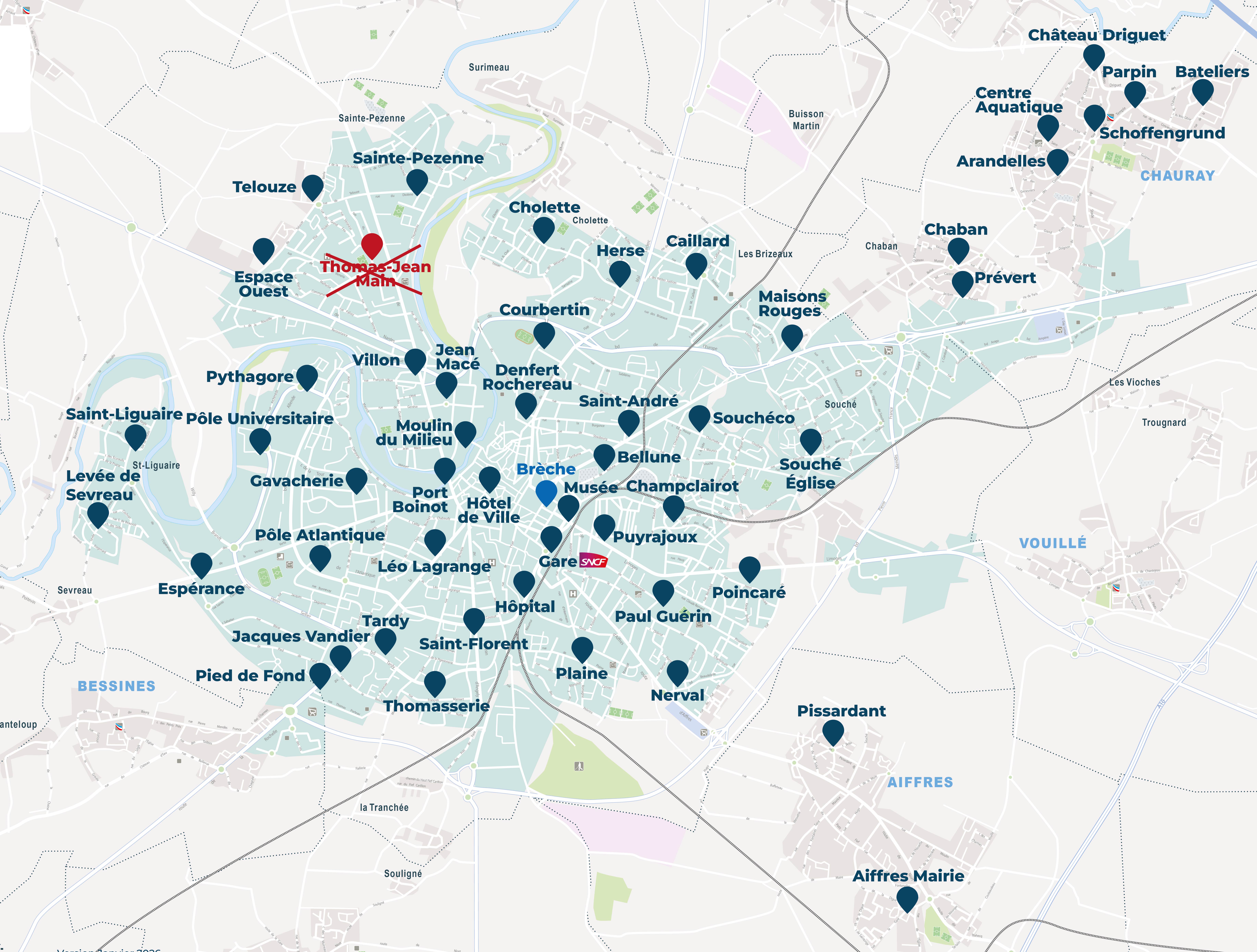 Suite à des dégradations importantes et récurrentes constatées sur la station de vélos libre-service Thomas-Jean Main, nous sommes contraints de fermer cet emplacement, le temps de trouver une solution.